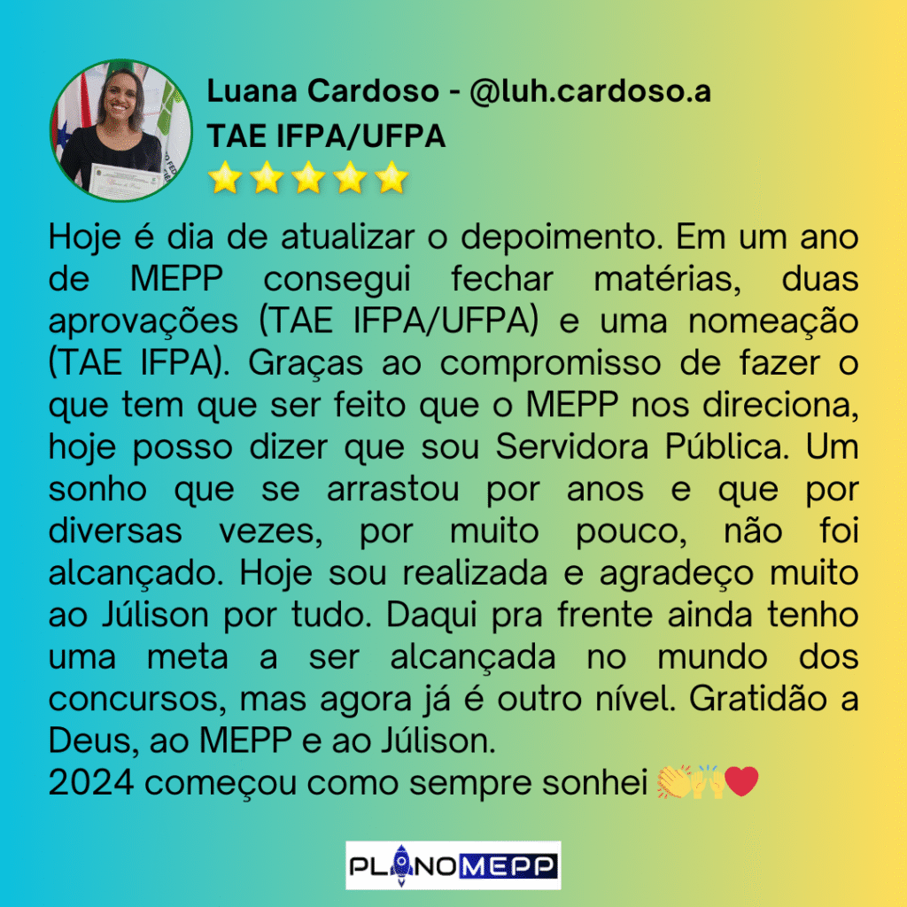 Com o PLANO MEPP, eu estudei em 9 meses, o equivalente aos 3 anos que eu achei que estava estudando certo.