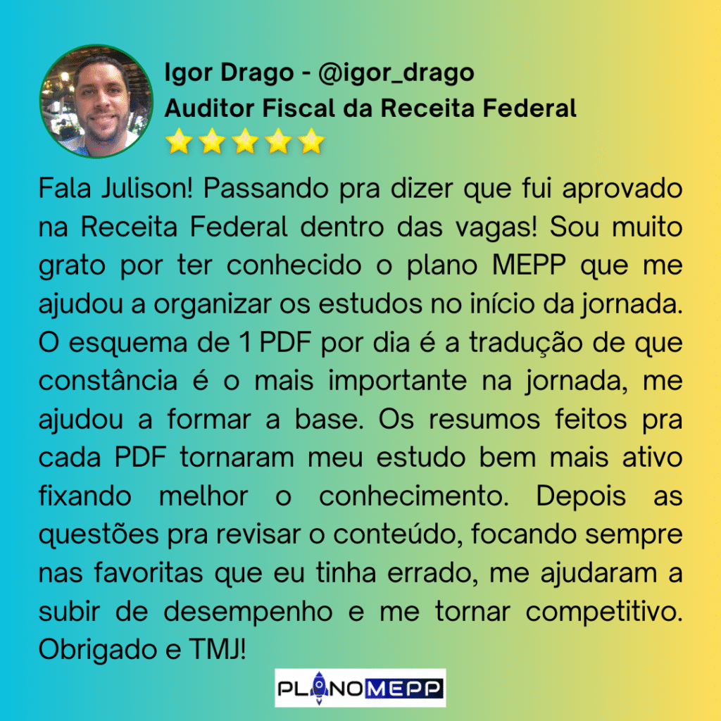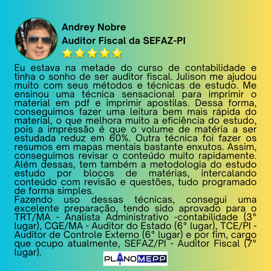 Esse método, me fez ser aprovado no concurso de AUDITOR FISCAL mais difícil do país. De 100 vagas, apenas 63 foram classificados, e eu estava lá.