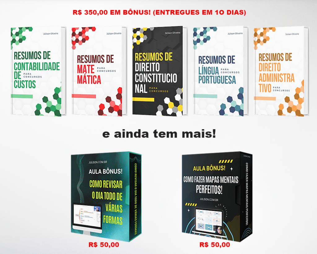 Então, se a ideia de criar uma rotina de estudos sustentável e sem se matar de estudar com esforços desnecessários, A HORA É AGORA para garantir o livro e todos esses bônus exclusivos.